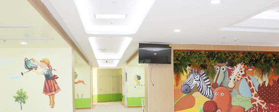 南京天佑儿童医院以打造专业、具有亲和力的人文医疗项目为核心理念,在设计构思上着力塑造个性化品牌形象,采用有140多年历史、世界顶尖儿童医院美国波士顿儿童医院的设计风格,聘请国内资深艺术大师进行墙体彩绘创作,呈现无限美好的生命活力与梦幻空间,为孩子创造美好的就医体验。